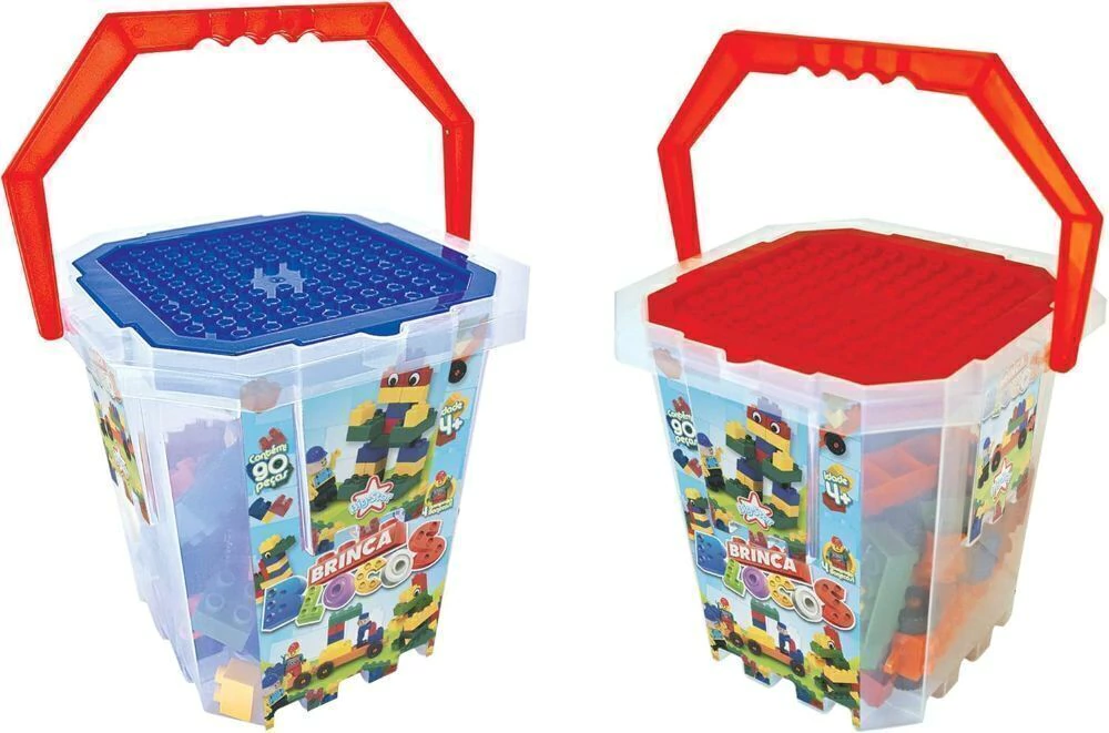 Blocos de Montar Balde Brinca Blocos 90 Peças Big Star