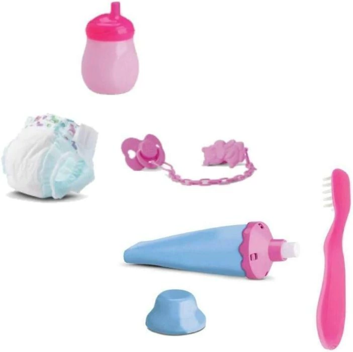 • Conteúdo da Embalagem: 1 Boneca New Born Cuidados, 1 Fraldinha, 1 Caixinha com Lencinho de Tecido, 1 Escova de Dentes, 1 Pasta de dentes, 1 Mamadeira e 1 Chupeta
