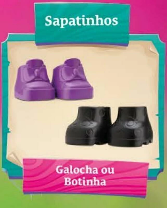 • Conteúdo da Embalagem: 1 boneca, 3 saquinhos surpresa (1 par de sapato, 1 acessório e 1 chaveiro)